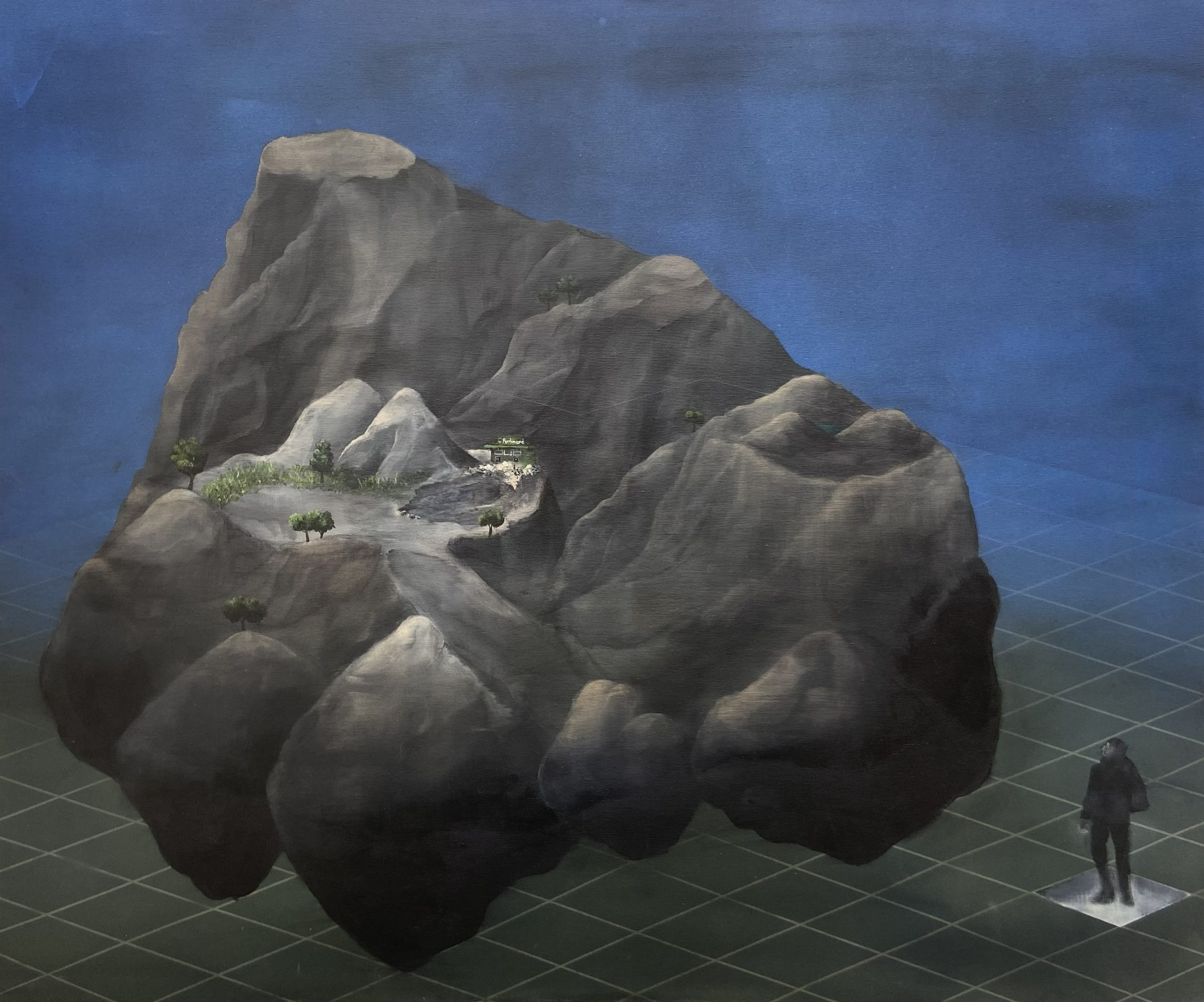 Klára Latta is currently studying at the Graphics Studio at the Academy of Fine Arts in Prague. In her work, she uses the isometric perspective from computer games. Klára inserts characters reminiscent of units from turn-based strategy games as well as avatars from role-playing games into her paintings, standing on highlighted tiles next to levitating sceneries, making us feel a bit like we are inside a game level editor.